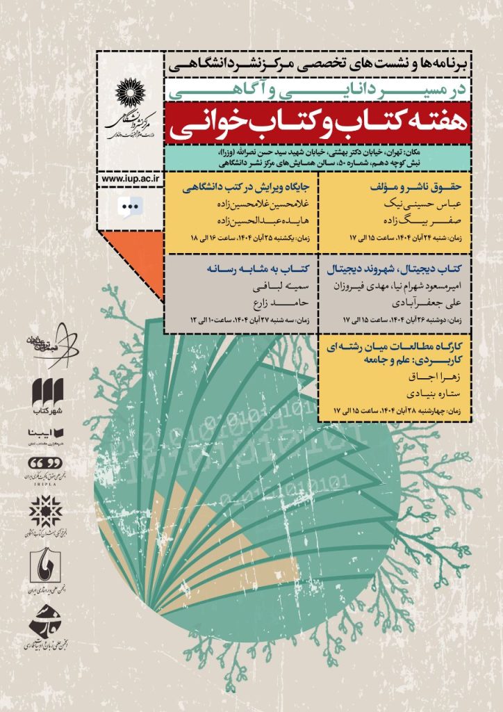 مرکز نشر دانشگاهی، به مناسبت فرارسیدن هفته کتاب و کتاب‌خوانی، سلسله نشست‌ها و کارگاه‌های تخصصی را با همکاری نهادها و انجمن‌های معتبر علمی و فرهنگی برگزار می‌کند. این برنامه‌ها با هدف بررسی چالش‌ها، فرصت‌ها و آخرین تحولات در عرصه‌های مختلف نشر، از شنبه ۲۴ تا چهارشنبه ۲۸ آبان‌ماه ۱۴۰۴ در محل این مرکز برگزار خواهد شد.